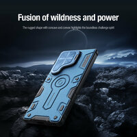 Противоударный чехол синего цвета от Nillkin на Samsung Galaxy S25 Ultra с откидной металлической крышкой для камеры, серия CamShield Armor Prop Case: сравнение цен, характеристики, фото, актуальное наличие и цены.