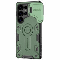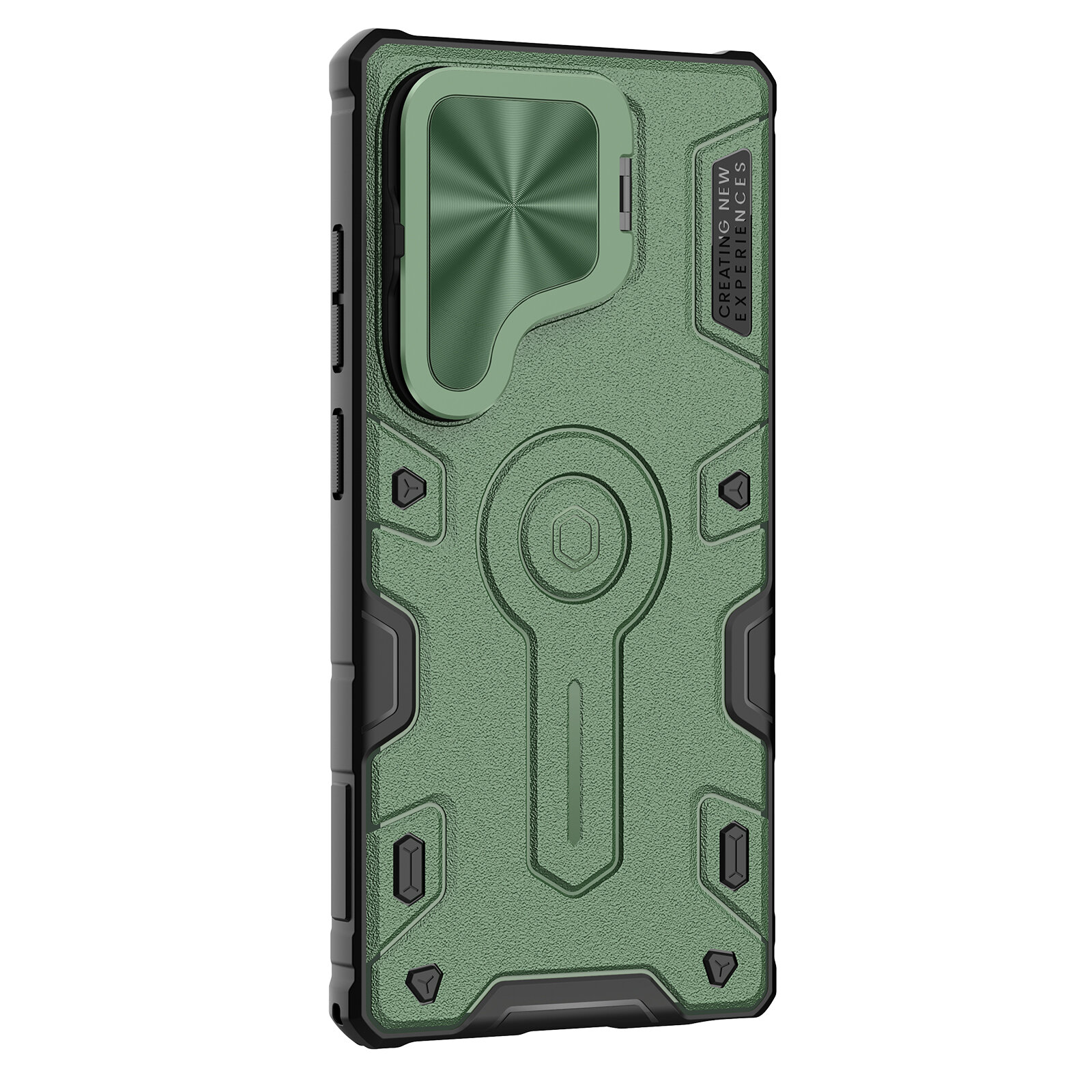 Купить Противоударный чехол зеленого цвета от Nillkin на Samsung Galaxy S25 Ultra с откидной металлической крышкой для камеры, серия CamShield Armor Prop Case с доставкой по всей России.