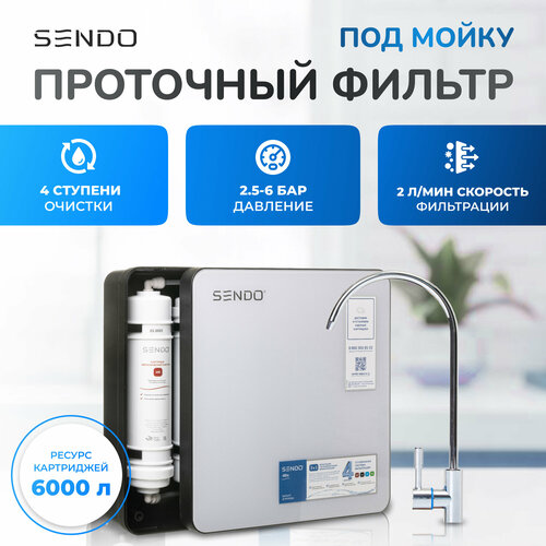 Sendo 4Bio - это компактный проточный фильтр с 4-x cтупенчатой очисткой. Обеспечивает высокую производительность, очищая до 2 литров воды в минуту. Предусмотрен минерализатор, который обогащает воду микроэлементами природного происхождения, улучшая ее вкус и качество.