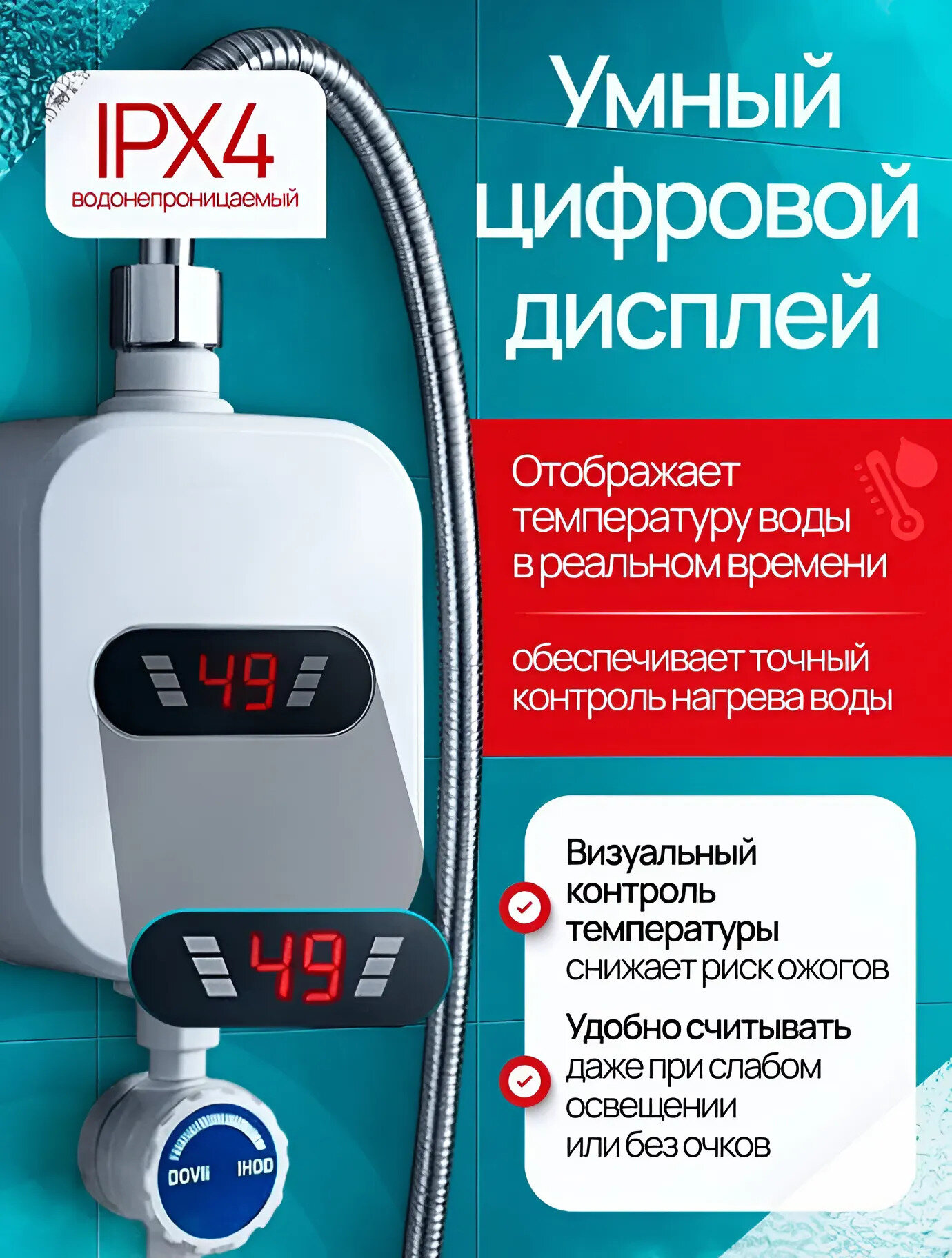 дисплей, душевая лейка в комплекте