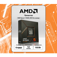 CPU AMD Ryzen 5 7600X BOX (100-100000593WOF) {4.7/5.0GHz Boost,38MB,105W, AM5, with Radeon Graphics, без кулера}