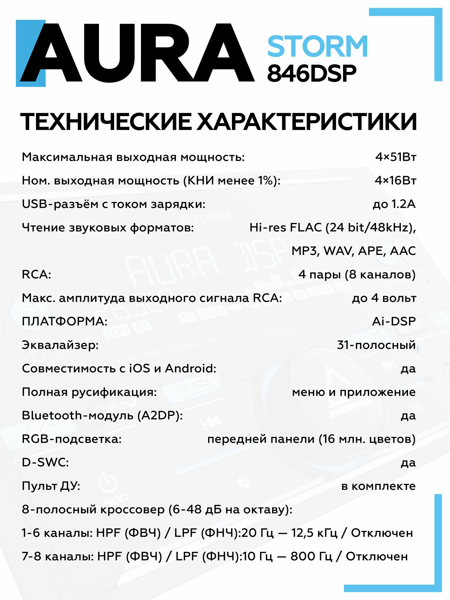 Автомагнитола Aura STORM-846DSP 2DIN, процессорная магнитола для авто с блютуз: сравнение цен, характеристики, фото, актуальное наличие и цены.
