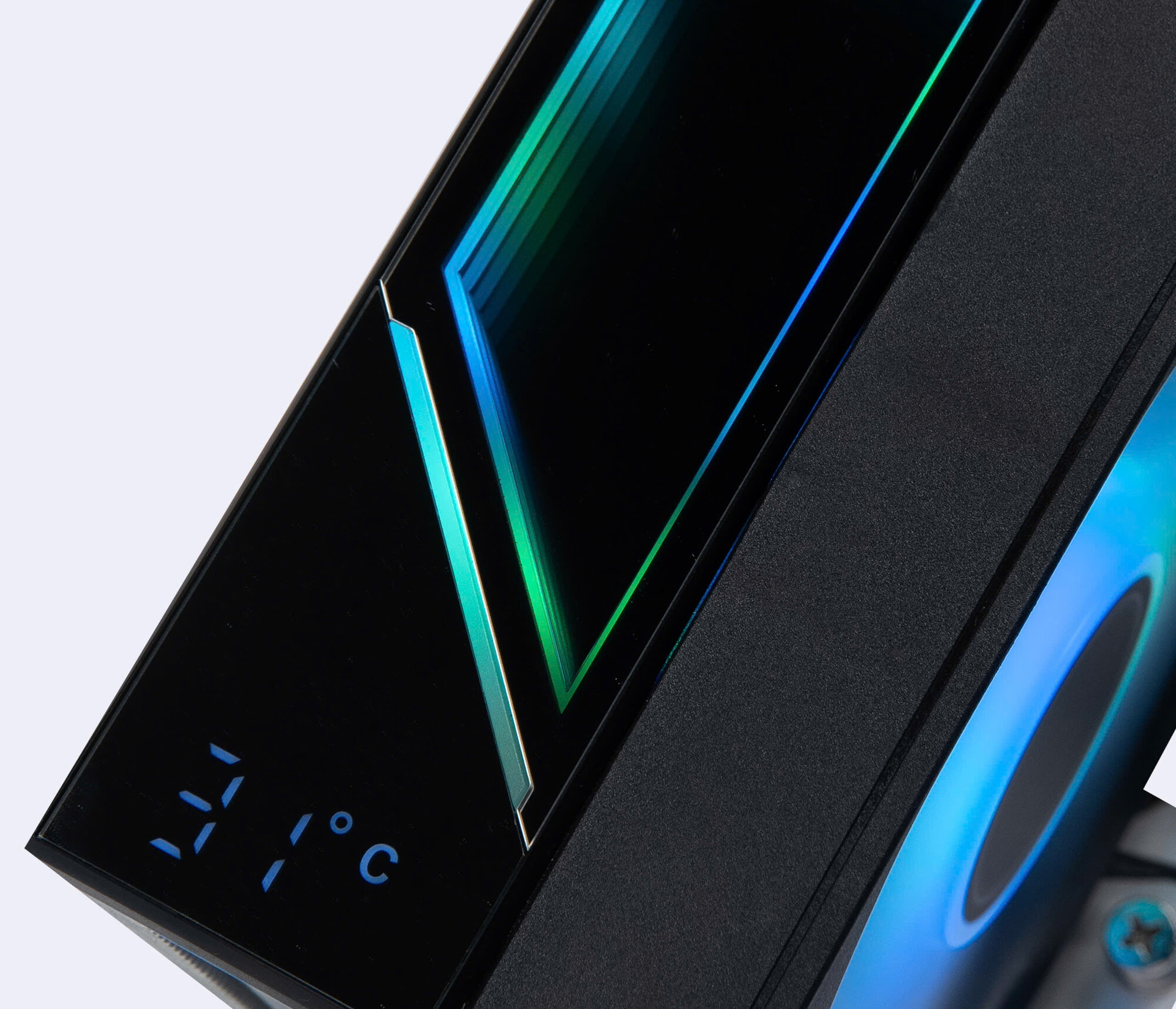 Функции: Интеллектуальный цифровой дисплей с контролем температуры Отображение данных о температуре процессора в режиме реального времени, точное определение рабочего состояния кулера, работа оборудования под контролем.