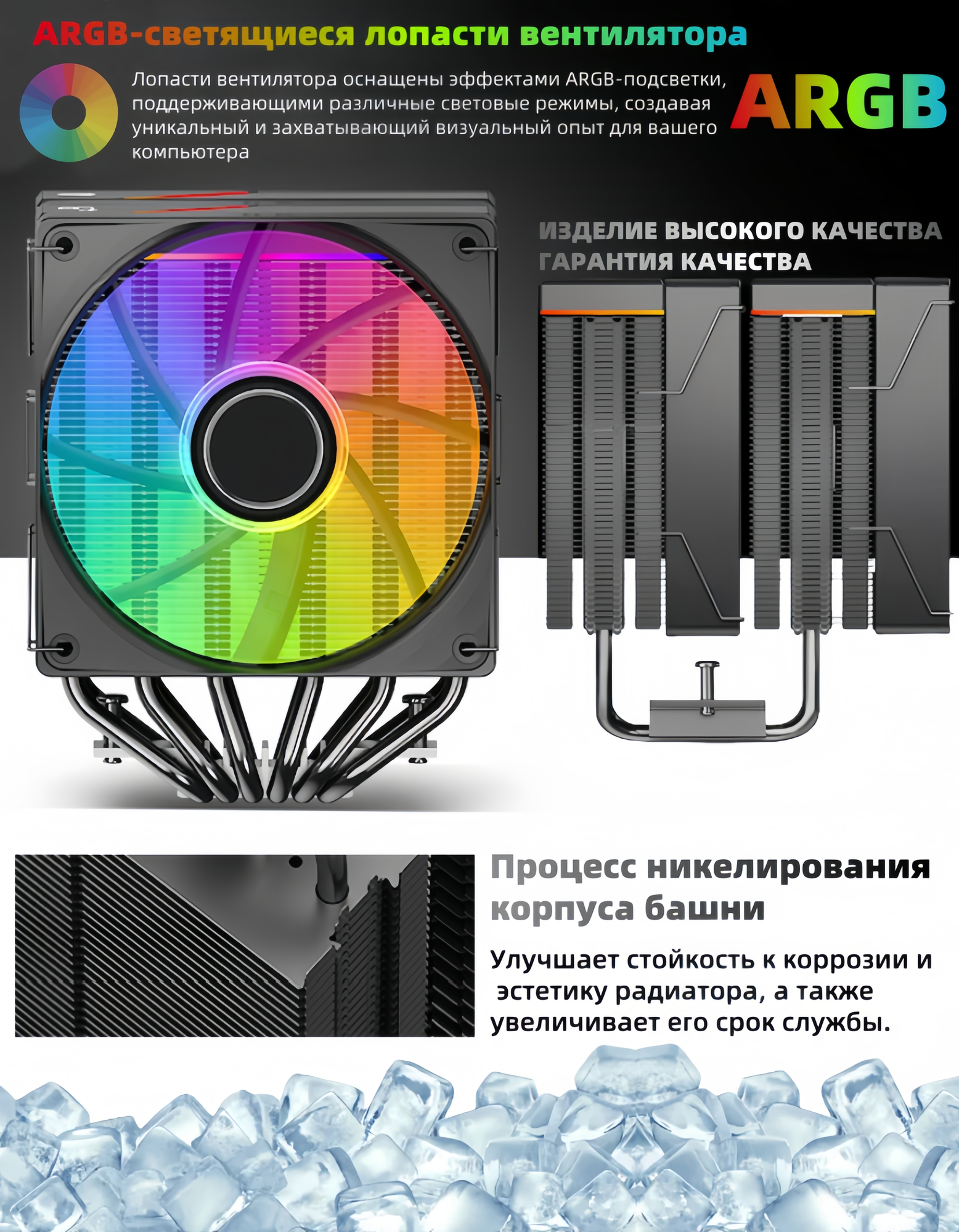 Главное преимущество данной модели — цифровой дисплей, отображающий температуру процессора в реальном времени. Это удобно и позволяет всегда контролировать состояние системы.