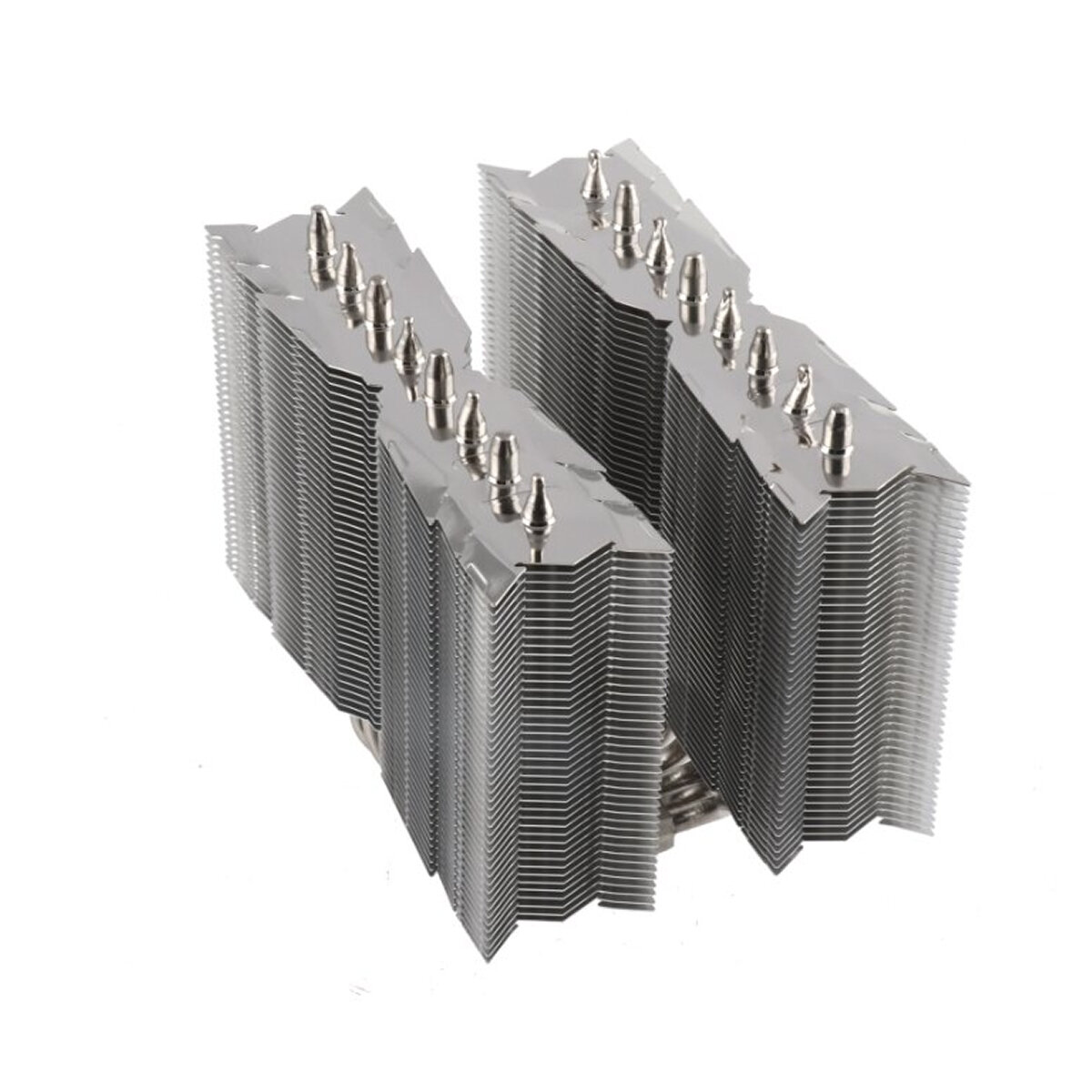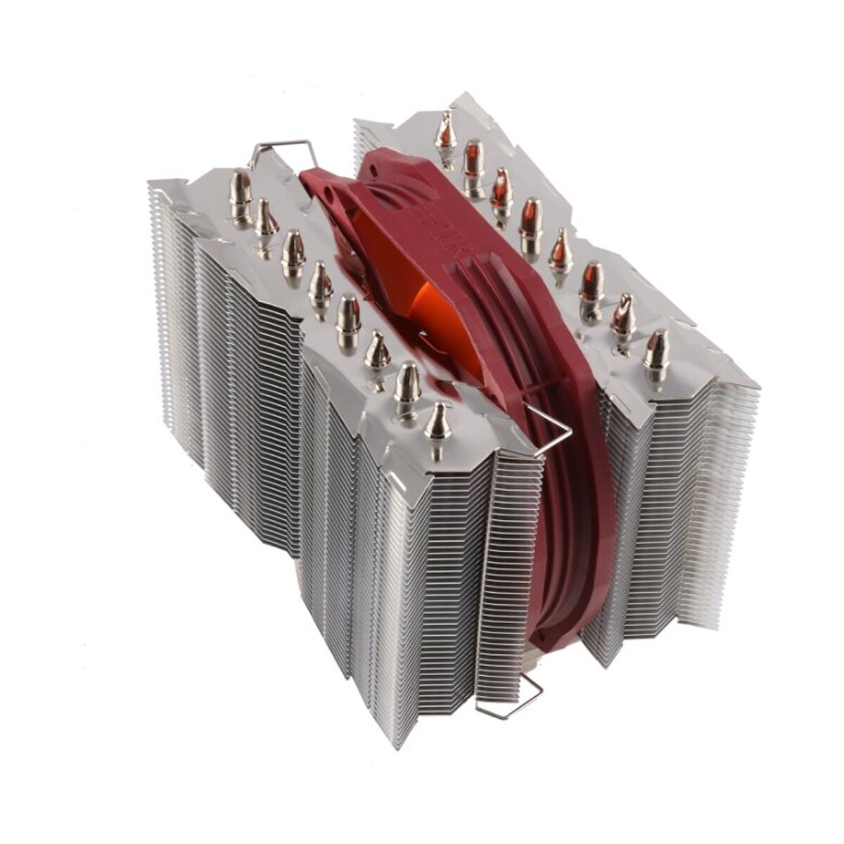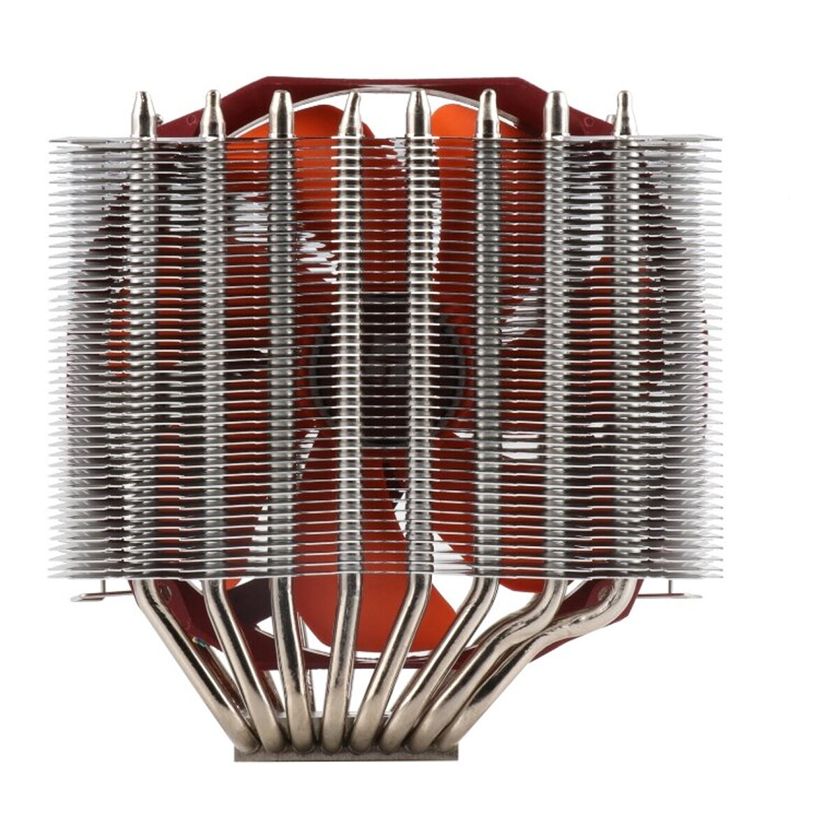 Кулер имеет 8 тепловых трубок из меди, которые эффективно отводят тепло от процессора к радиатору. Материал радиатора - алюминий, что обеспечивает высокую теплопроводность и долговечность.