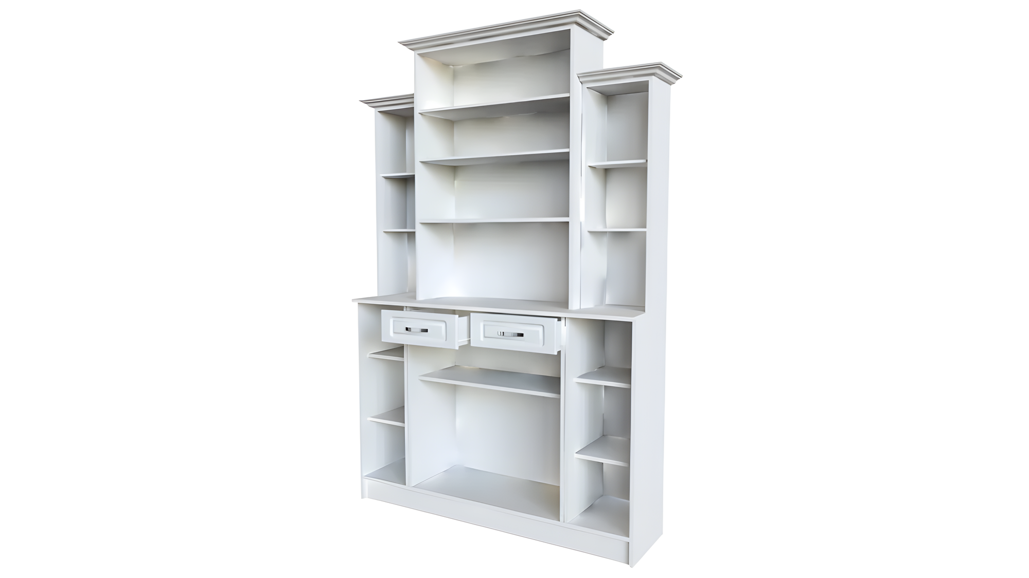 Купить Буфет для гостиной, размеры 1400х2150х430 мм, корпус ЛДСП белый с тиснением «Древесные поры» с доставкой по всей России.