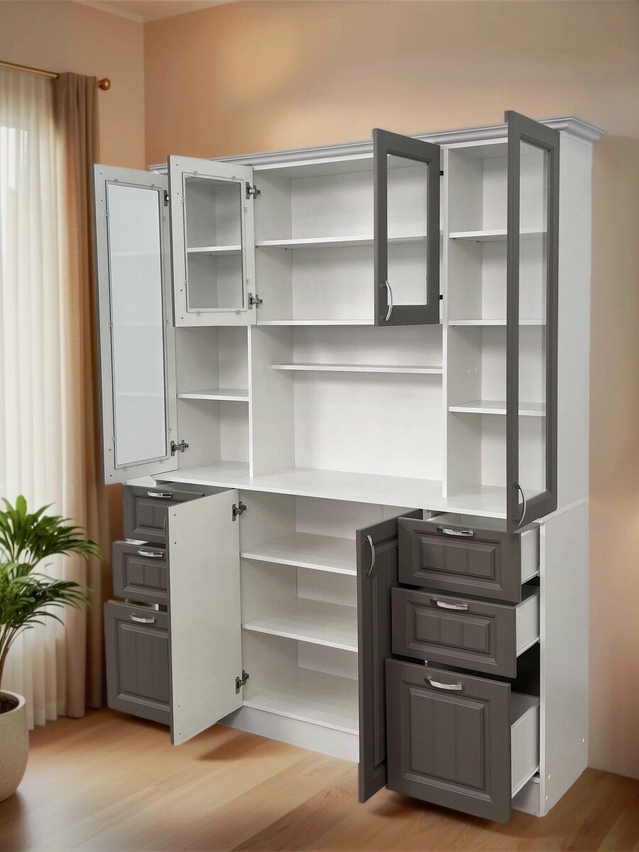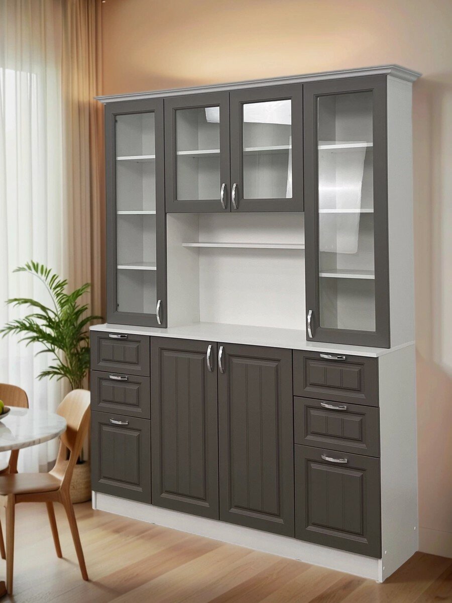 Буфет Прованс-016 станет основной составляющей рабочей зоны на вашей кухни. За распашными дверьми вы сможете разместить различную красивую посуду, чайные наборы, стеклянные бокалы, алкогольные напитки и многое другое. Данная модель является результатом кропотливой работы, а также отлично сочетает в себе опыт, удобство и практичность. Размер: (ШхВхГ) 1600х2150х430 Цветовое решение: Корпус: ЛДСП - Белый с тиснением "Древесные поры" Фасад: МДФ - Клен Белый/Клен кремовый/Клен Бирюза/Клен Серый/Дуб канадский/Дуб канадский белый Столешница: 16мм ЛДСП-белый с тиснением "Древесные поры" Ручка: С-6 Каждый из буфетов Вы можете заказать в нужном Вам цвете. Товар поставляется в разобранном виде.