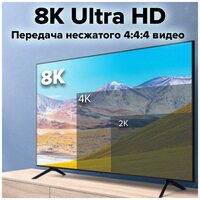 Окунитесь в реальный мир 8K: с момента подключения кабеля начинается яркий и красочный визуальный праздник. Будь то телевизор высокой четкости, устройство виртуальной реальности или современная игровая приставка, этот HDMI кабель подарит вам по-настоящему уникальные возможности.