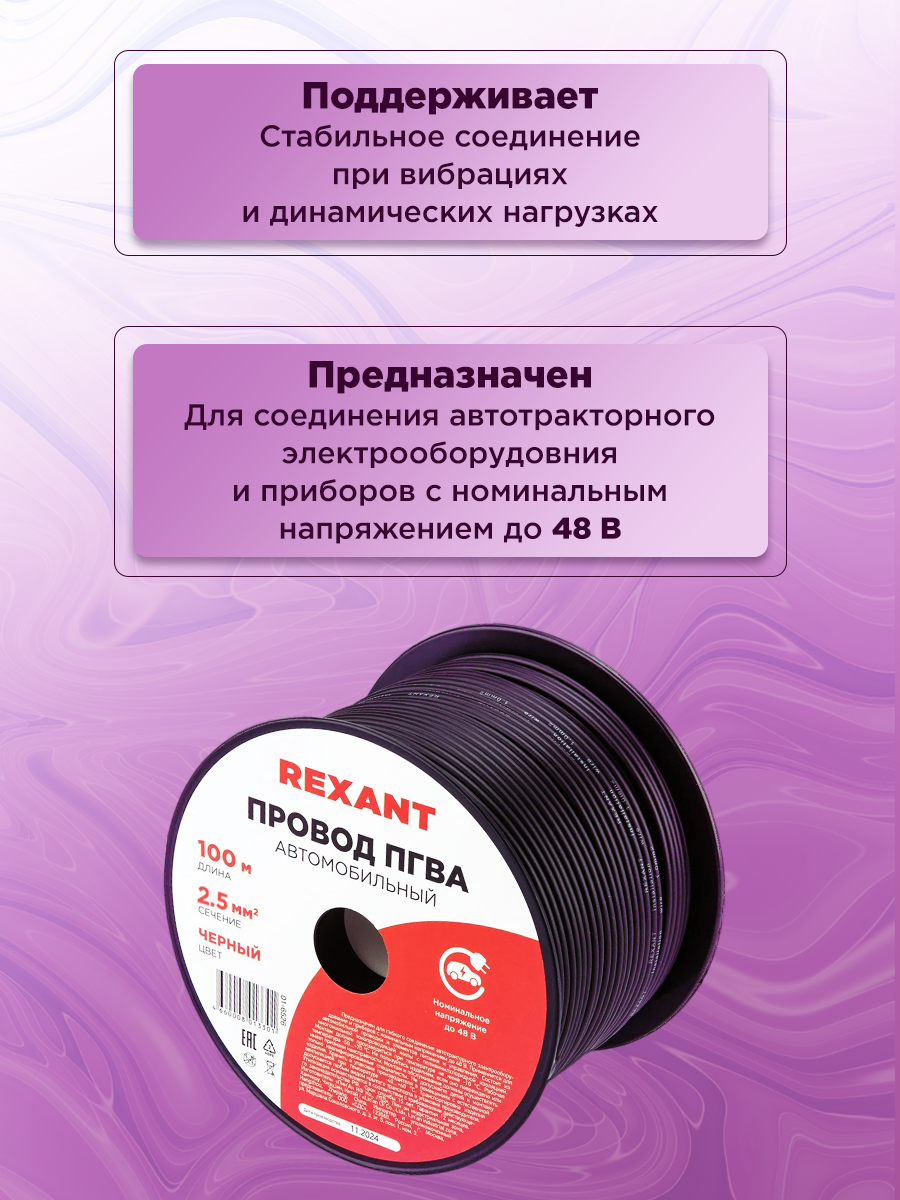 Купить Провод REXANT PGVA, автомобильный, черный, сечение 2.5мм², длина 100м с доставкой по всей России. Провод REXANT PGVA, автомобильный, черный, сечение 2.5мм², длина 100м: сравнение цен, характеристики, фото, актуальное наличие и цены.