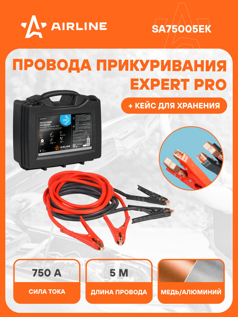 Провода прикуривания 750А EXPERT PRO (5м, 12/24В, кейс) SA75005EK AIRLINE: сравнение цен, характеристики, фото, актуальное наличие и цены.