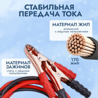 Напряжение: 12/24 В. Максимальный ток: 400 A. Кол-во жил в проводе: 170 шт. Площадь сечения:13,6 мм2. Длина: 2,5 м. Материал жил: медь, алюминий Материал обмотки: TPR (термопластичная резина) Рабочая температура: от -40°C до +80°C.