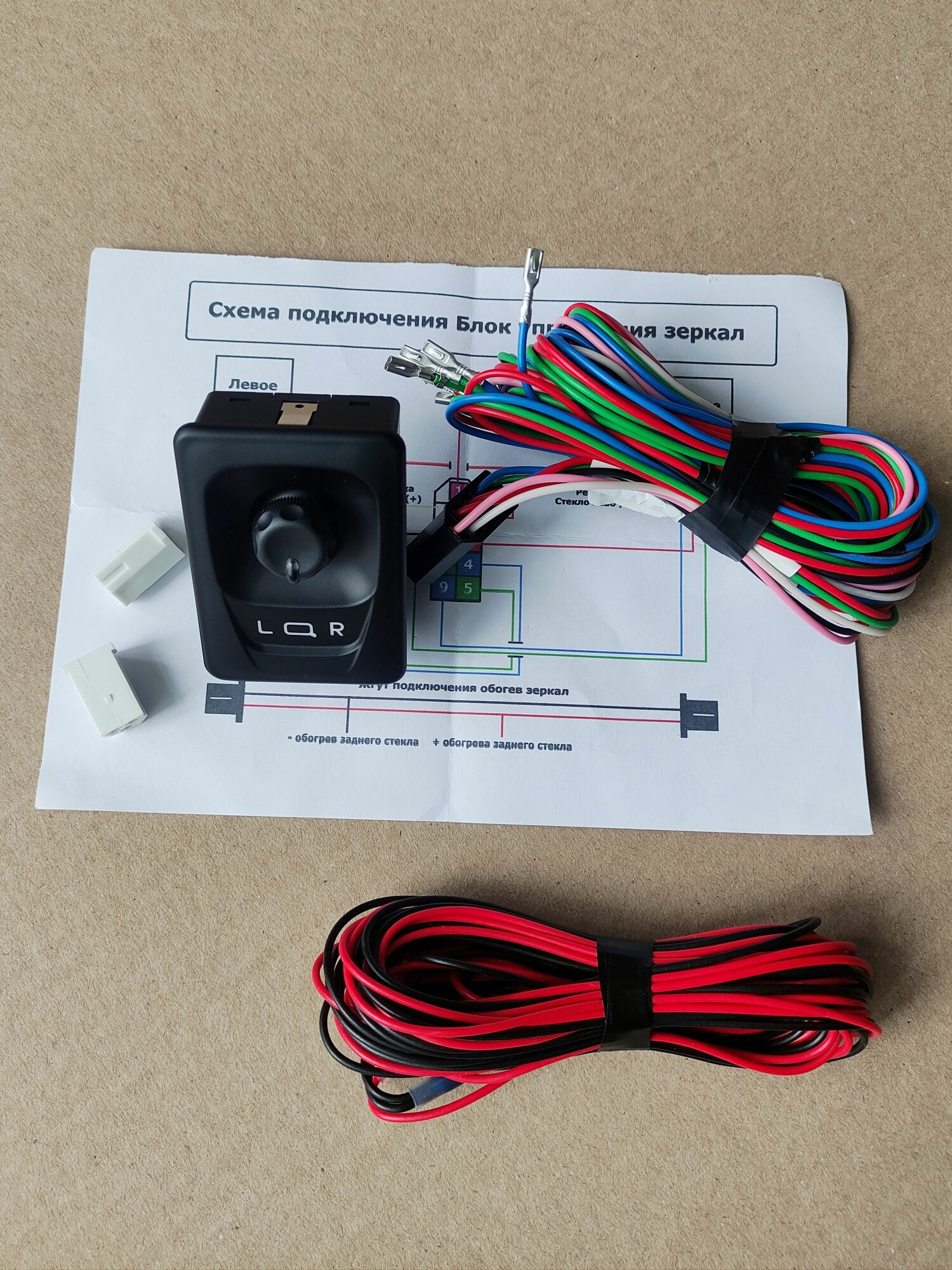 Монтажный комплект подключения электрорегулировки и обогрева боковых зеркал автомобилей. Применяется при монтаже электроуправляемых зеркал взамен штатных с механической регулировкой. В комплекте также проводка для подключения электробогрева зеркал. Комплект может быть установлен практически на все автомобили. Монтажный размер блока джойстика 45х65мм. В комплект входят: Джойстик управления зеркалами, жгут электрорегулировки зеркал, жгут обогрева зеркал, колодки. Подключения производятся по прилагаемой схеме. Цвет подсветки кнопок - зеленый.
