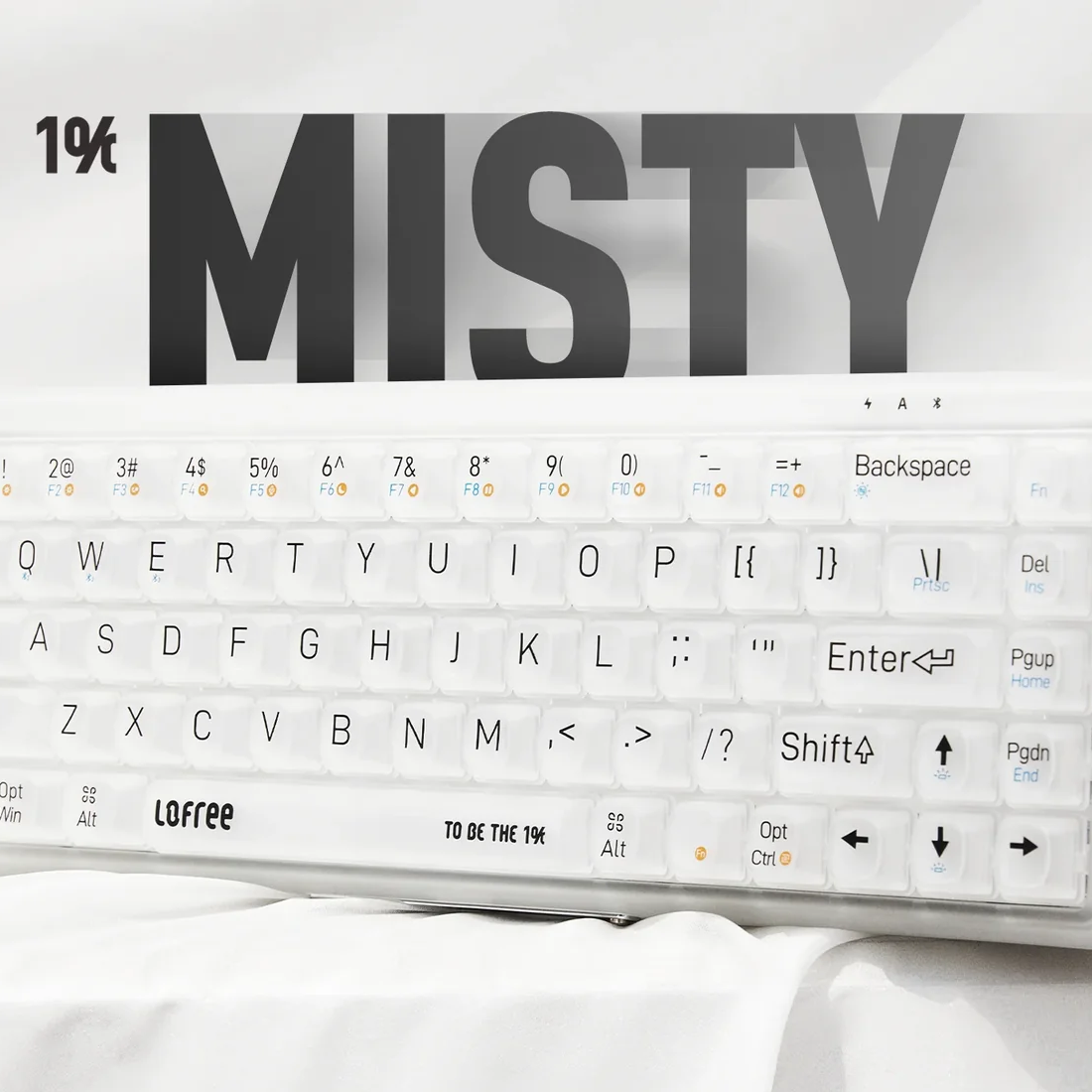 1% Misty — классическая механика 65% формата из серии полупрозрачных клавиатур. Главная её фишка: матовый финиш пластика, который красиво рассеивает белую подсветку. Необычная, минималистичная и с приятным мягким нажатием клавиш.