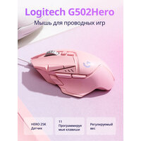 Проводная механическая оптическая мышь Logitech G502 Hero для ноутбука игровая мышь, розовый