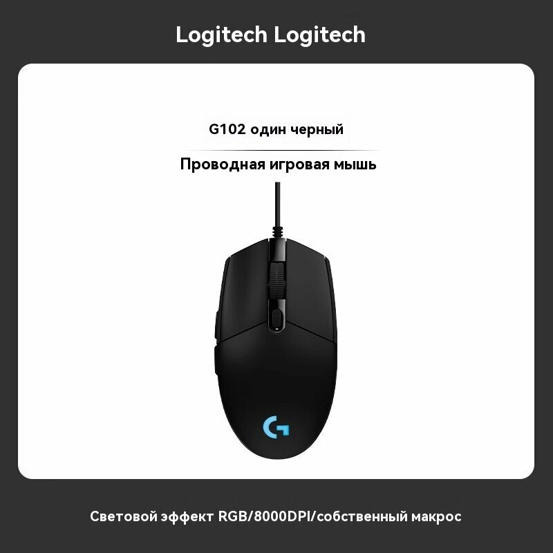 Проводная мышь Logitech G102 второго поколения с подсветкой RGB для макропрограммирования игровой периферии: сравнение цен, характеристики, фото, актуальное наличие и цены.