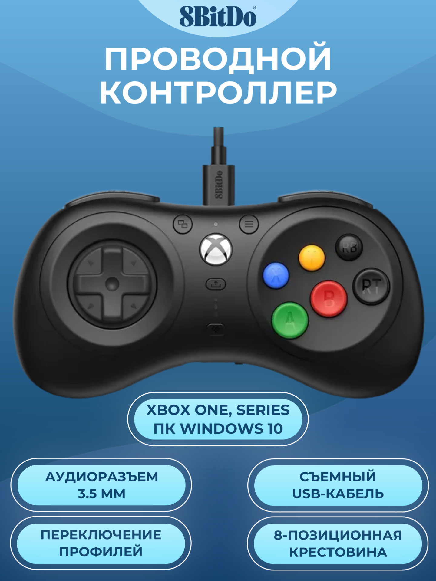 Проводной геймпад 8BitDo M30 для Xbox One, Series, ПК, черный: сравнение цен, характеристики, фото, актуальное наличие и цены.