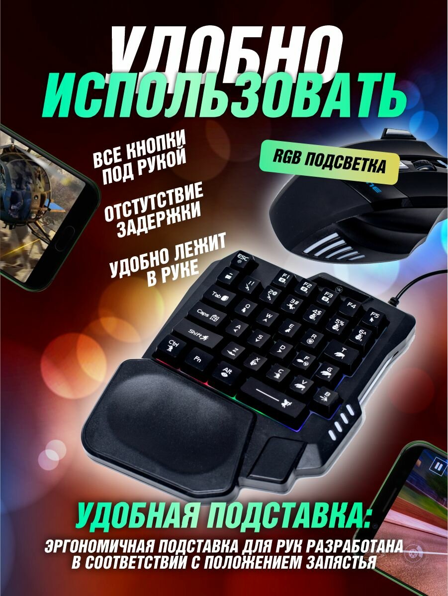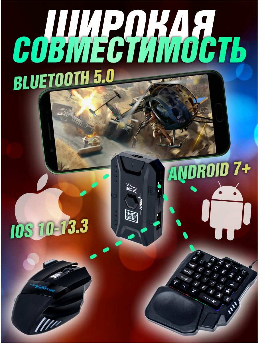 | Подробная комплектация | Беспроводной конвертер; игровая мышь; игровая клавиатура; кабель питания; коврик для мышки; подставка под устройство |