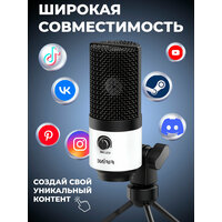 электретный (малый конденсатор), настольный, для стриминга и подкастов, кардиоидная направленность, 20-20000 Гц, разъем подключения USB Type-A, длина кабеля 1.8 м