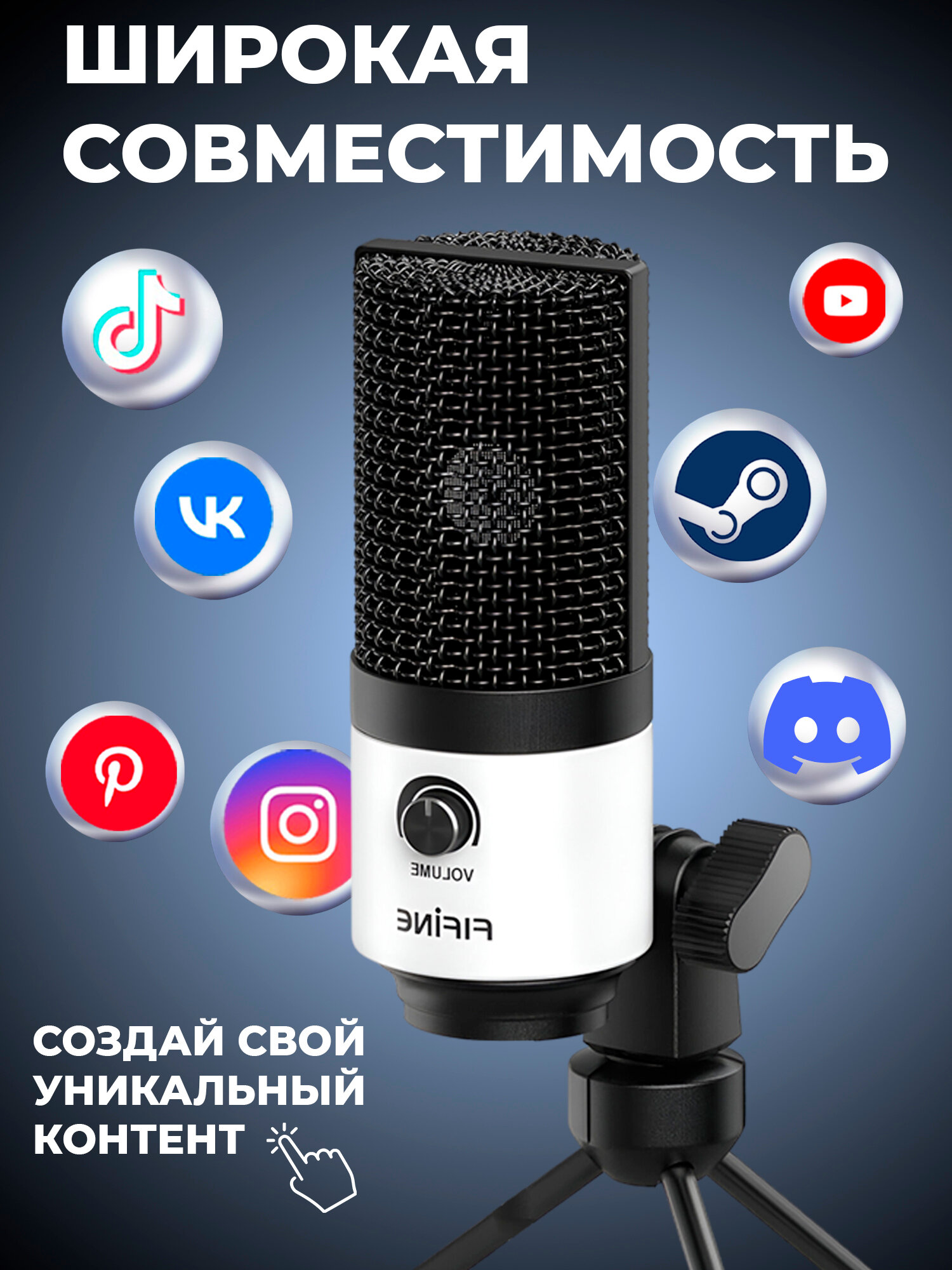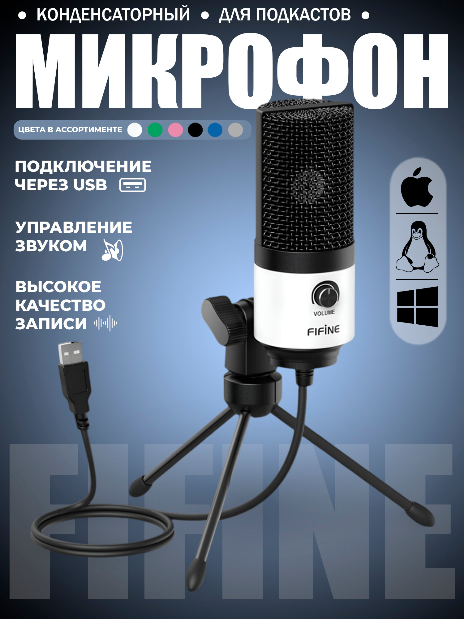 Купить Проводной микрофон Fifine K669, белый, настольный, конденсаторный, USB с доставкой по всей России. Проводной микрофон Fifine K669, белый, настольный, конденсаторный, USB: сравнение цен, характеристики, фото, актуальное наличие и цены.