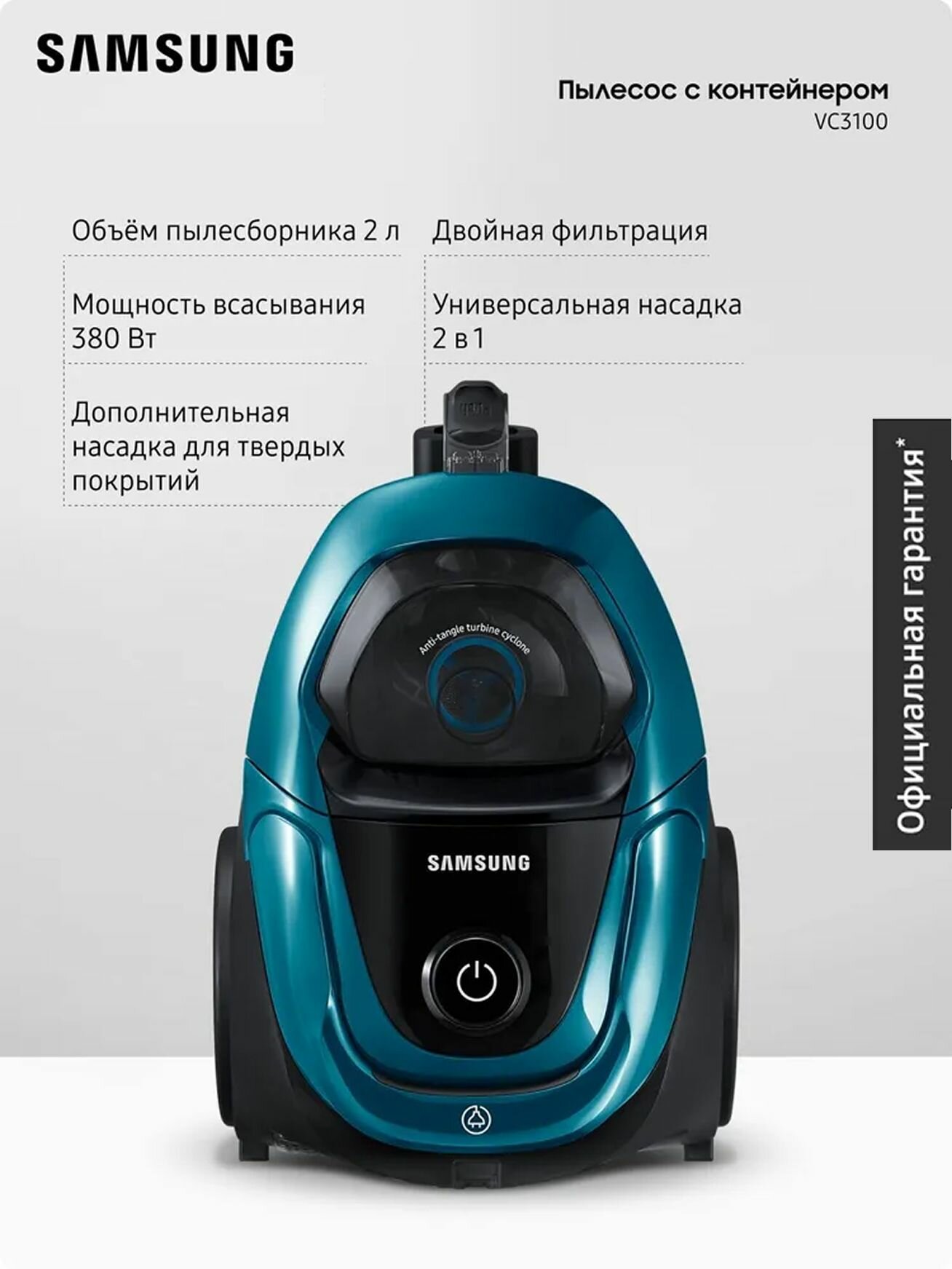 Проводной пылесос Samsung VC18M31B0HN/EV, 1800Вт, контейнер, анти-запутывание, автосматывание шнура: сравнение цен, характеристики, фото, актуальное наличие и цены.