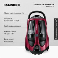 Безмешковый пылесос Samsung с повышенной мощностью всасывания 430 Вт. обеспечивает исключителную чистоту уборки.
