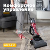 | особенности конструкции | вертикальная парковка, индикатор заполнения пылесборника, место для хранения насадок, регулятор мощности на корпусе, управление мощностью на рукоятке |