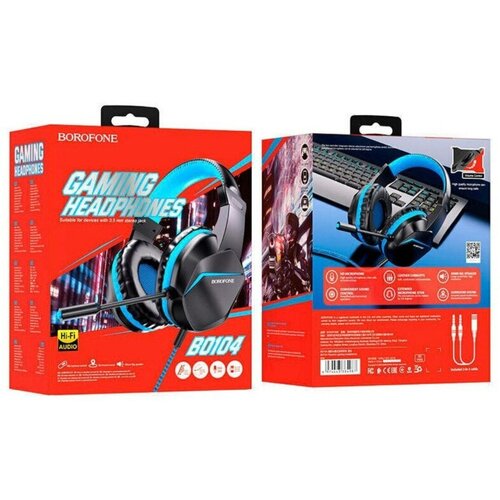 Проводные наушники с микрофоном Borofone BO104 оснащены динамиками 40мм с прекрасной акустической стерео - системой для чистого звука. Наушники с микрофоном для компьютера предназначены для профессиональных геймеров, со встроенной подсветкой. Наушники игровые для пк имеют регулируемое оголовье для комфортной посадки на голове взрослого человека и подростка. Конструкция крепится на широком регулируемом оголовье и дополнена подвижным складным микрофоном, который при необходимости можно убрать в корпус гарнитуры. С помощью регулятора на кабеле можно менять громкость. Устройство с накладными амбушюрами из силикона создает закрытое акустическое оформление посредством динамических излучателей. Звук транслируется в диапазоне от 20 до 20000 Гц. Длинный кабель в прочной оплетке, который позволит разместить наушники в любом удобном месте. Длина провода 1,8 метра. Гарнитура подходит для детских и взрослых ушей. Большие комфортные наушники с микрофоном для телефона подойдут геймерам для занятий кибер спортом. Компьютерные проводные наушники можно подключать с помощью провода Mini jack 3.5 mm. Подойдут для просмотров фильмов на пк или прослушивания аудиокниг. Они совместимы с разной техникой и электроникой - плеерами, телевизорами, приставками.