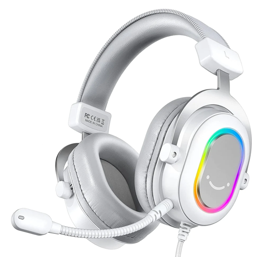 Проводная гарнитура Fifine H6 ‒ игровое устройство с охватывающими мягкими амбушюрами. Мягкие чашки плотно прилегают к ушным каналам, не шатаются. Оголовье и амбушюры обтянуты экокожей. Благодаря хорошему прижиму вы получаете пассивную звукоизоляцию, в результате чего утечки басов не будет. Активация подсветки чашек происходит при отключении микрофона. При необходимости микрофон можно снять или отодвинуть. При показателе чувствительности микрофона -40 вы не будете ощущать помех и посторонних шумов. Динамики диаметром 50 мм воспроизводят звуки в диапазоне 20-20000 Гц. Особенность Fifine H6 в поддержке звука 7.1 Virtual и режимов звучания для разных ситуаций. В режиме кино вы получаете сбалансированное звучание с верхними и низкими частотами. Для игры присуще плотное, мощное и басовитое звучание, что создает эффект погружения. Для музыки присуще яркое, светлое звучание с акцентом на высокие частоты. Пульт управления зафиксирован на проводе и позволяет регулировать громкость звучания, включать и выключать объемный звук, выбирать режим эквалайзера.