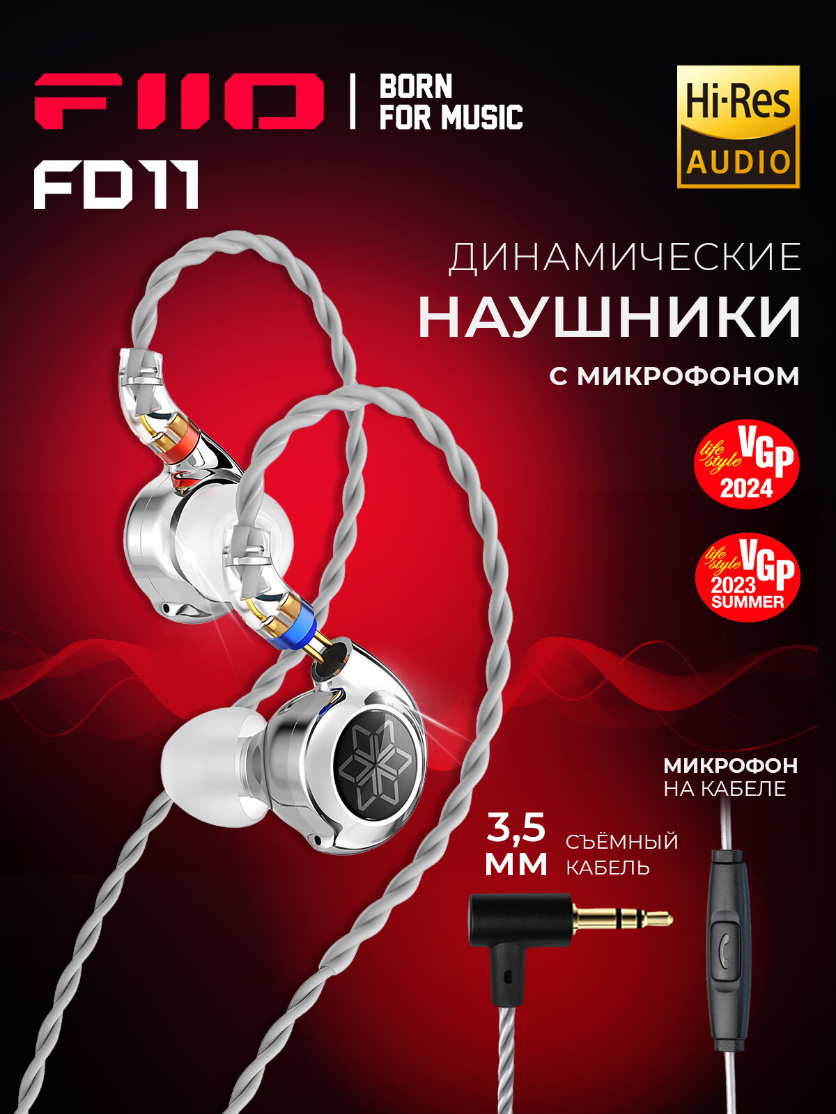 Купить Проводные наушники FIIO FD11 MIC silver, динамические, с микрофоном на проводе с доставкой по всей России.