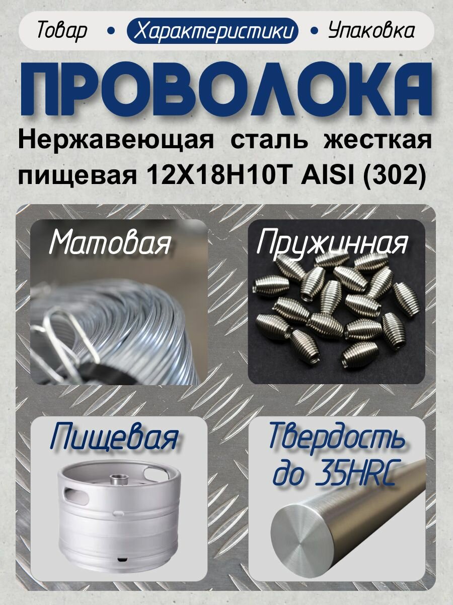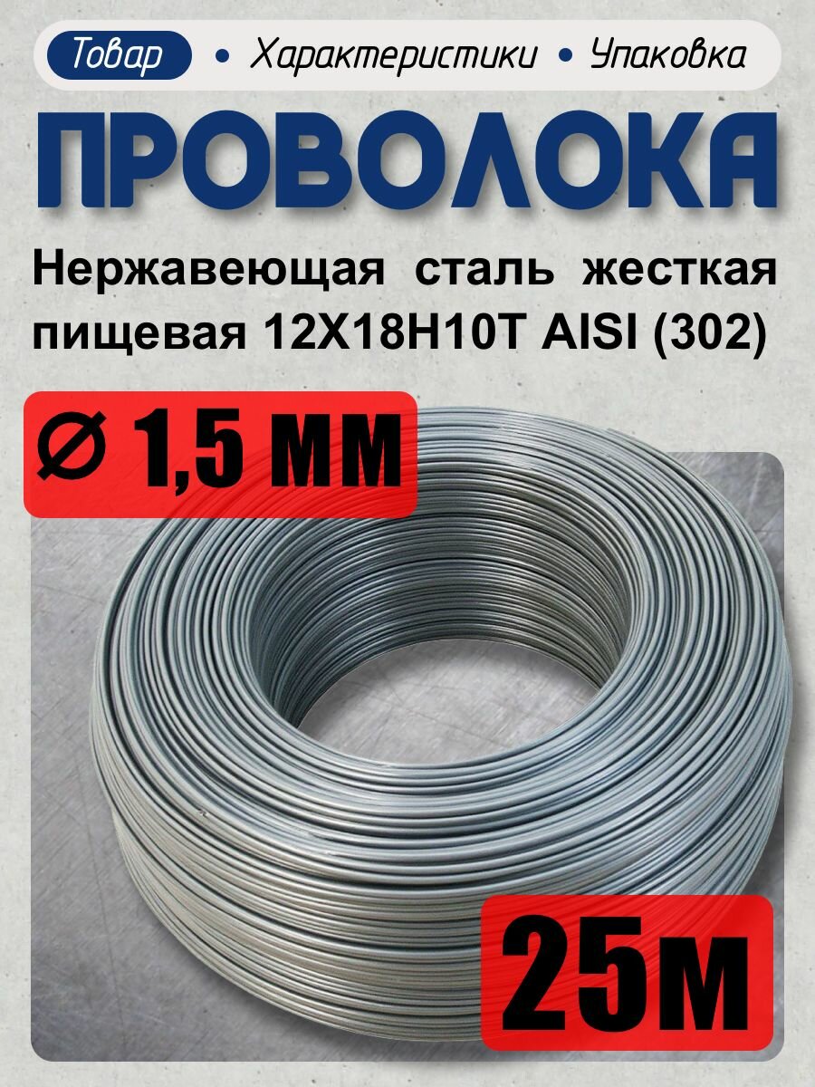 Проволока нержавеющая (пружинная, пищевая) жёсткая 1,5 мм в бухте 25 метров, сталь 12Х18Н10Т (AISI 302): сравнение цен, характеристики, фото, актуальное наличие и цены.