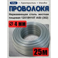 Проволока нержавеющая (пружинная, пищевая) жёсткая 4,0 мм в бухте 25 метров, сталь 12Х18Н10Т (AISI 302): сравнение цен, характеристики, фото, актуальное наличие и цены.