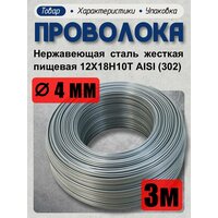 Проволока нержавеющая (пружинная, пищевая) жёсткая 4,0 мм в бухте 3 метра, сталь 12Х18Н10Т (AISI 302): сравнение цен, характеристики, фото, актуальное наличие и цены.