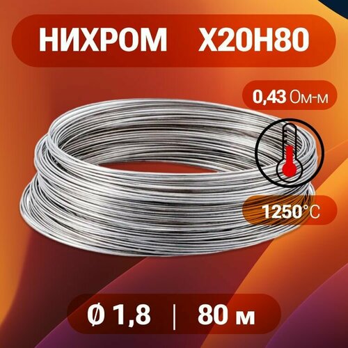 Проволока нихром 1.8 мм в бухте 80 м. Марка стали Х20Н80. Нихромовая проволока для нагревательных спиралей, резки пенопласта, ЧПУ выжигателей, нагревателей, в печах для сушки и обжига: сравнение цен, характеристики, фото, актуальное наличие и цены.
