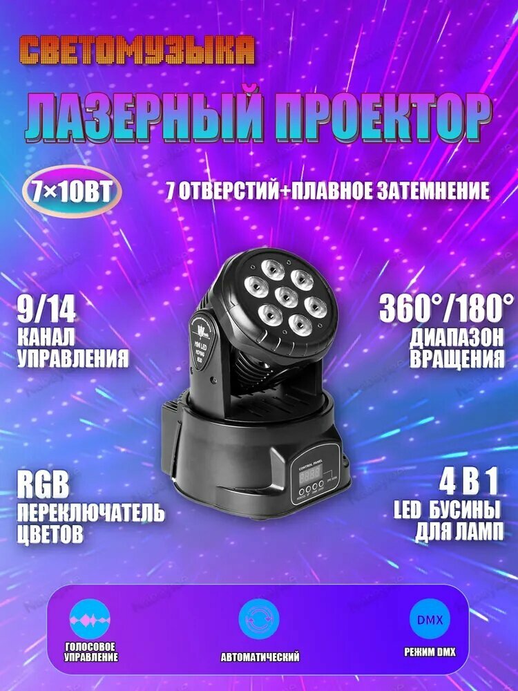 Прожектор RGB 4-в-1 мощностью 7 * 10 Вт, меняющий цвет, подходит для освещения дискотек и вечеринок: сравнение цен, характеристики, фото, актуальное наличие и цены.