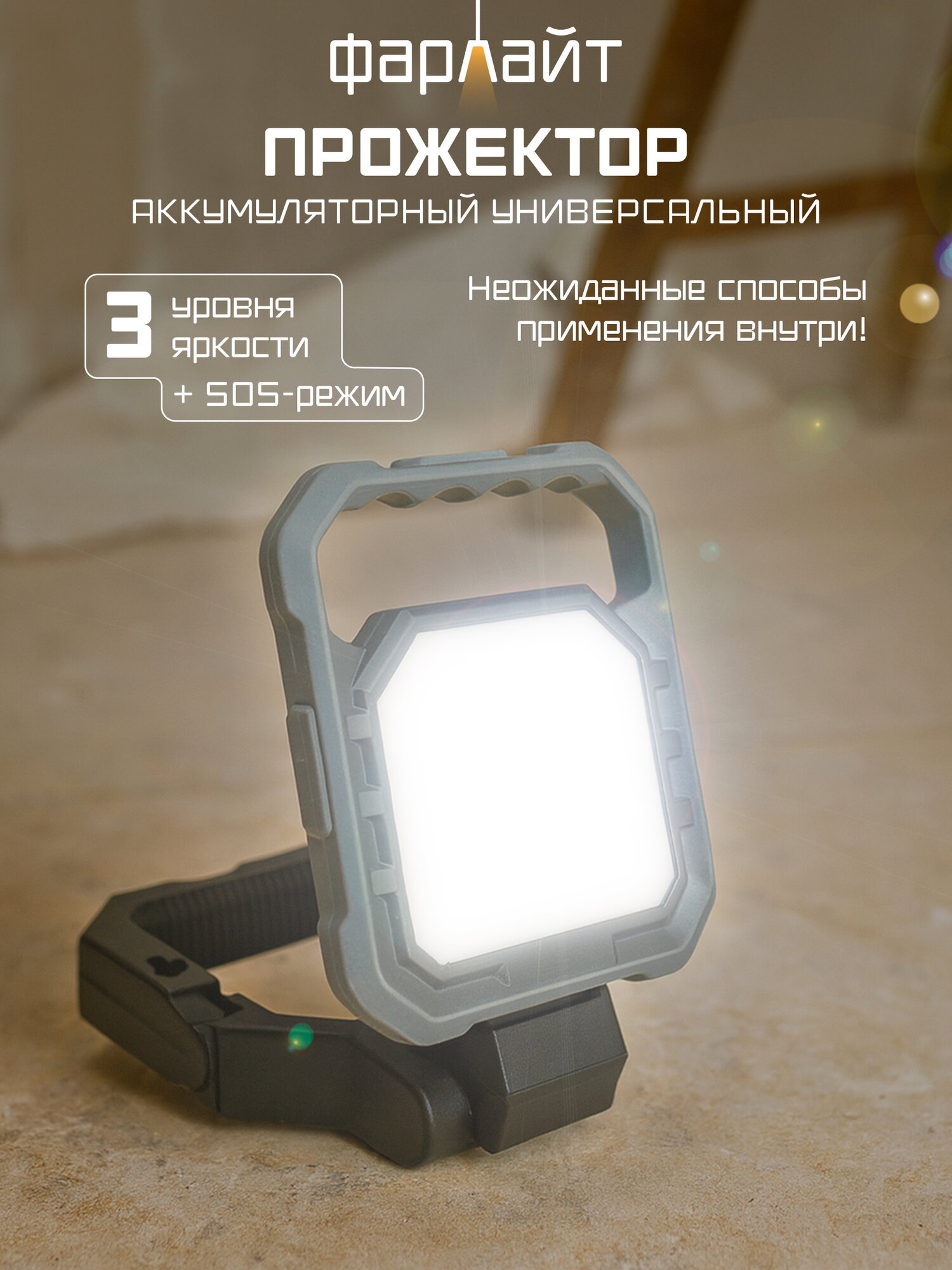 Прожектор светодиодный аккумуляторный 2200 лм 4000 мА*ч 3 режима на поворотной подставке на магнитах IP20 Фарлайт: сравнение цен, характеристики, фото, актуальное наличие и цены.