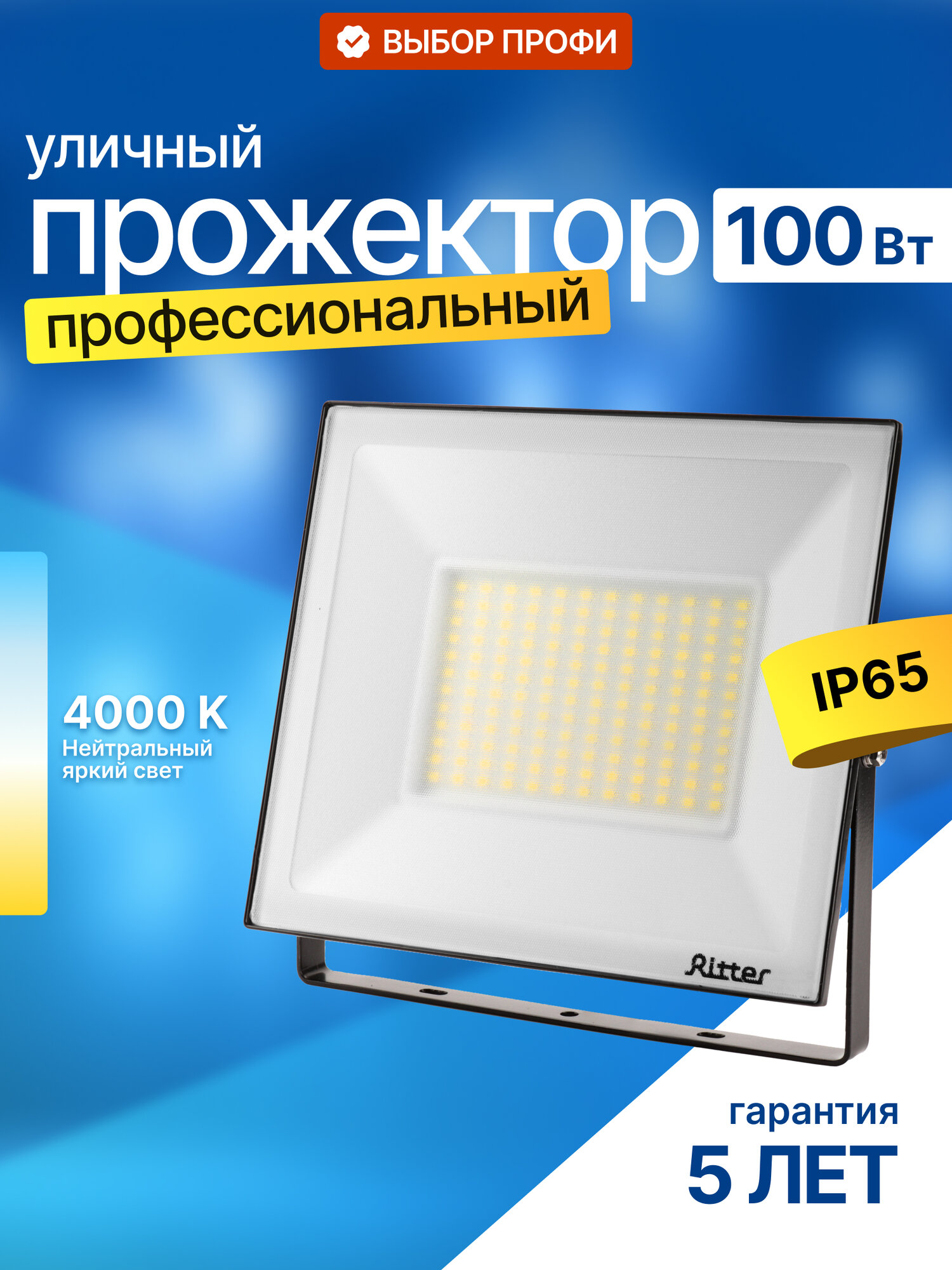 Прожектор Ritter светодиодный 100Вт уличный, нейтральный свет 4000К, IP65, серия PROFI 53419 2: сравнение цен, характеристики, фото, актуальное наличие и цены.