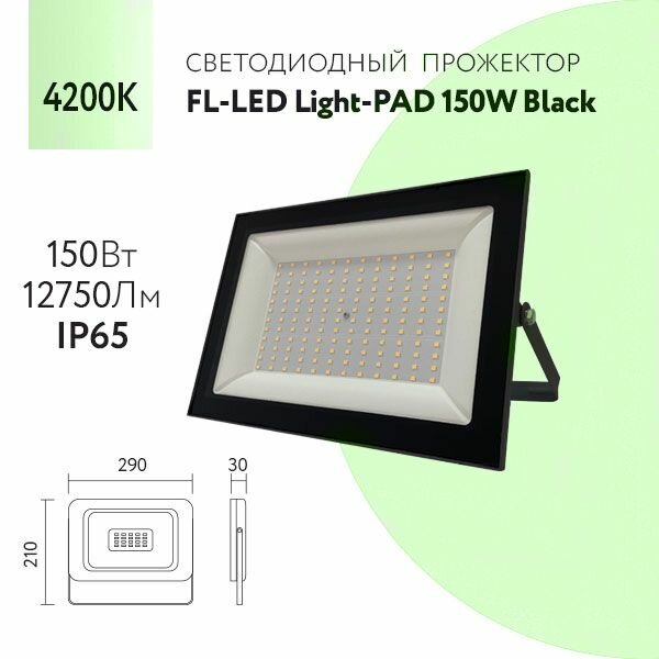 Светодиодный прожектор Черный FL-LED Light-PAD FOTON Lighting 150W 4200К 5950Lm IP65 FL-LED Light-PAD