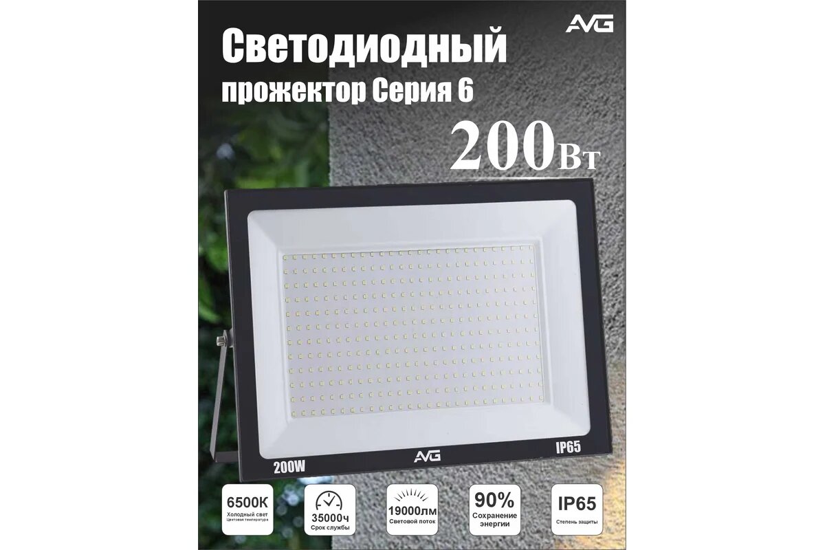 AVG Прожектор светодиодный серия 6 SDO-6 200Вт, 200-240В, 6500К, 260x30x195мм, IP65, черный серия 6 200ВТ: сравнение цен, характеристики, фото, актуальное наличие и цены.