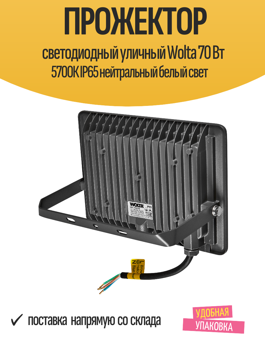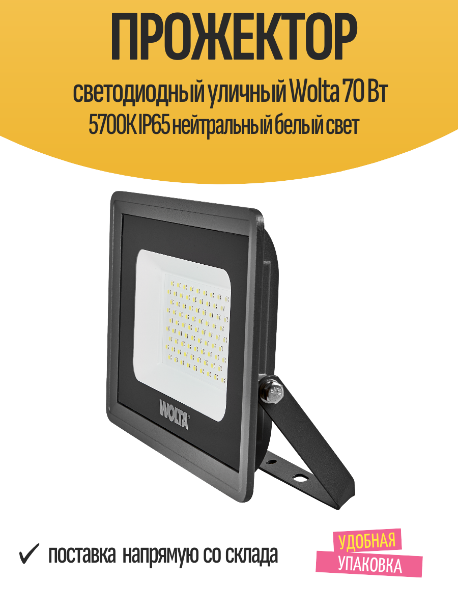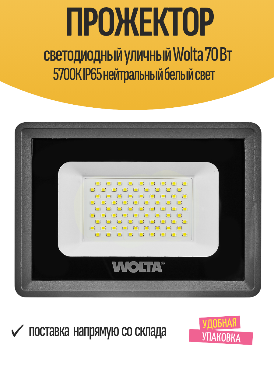 Прожектор светодиодный уличный Wolta 70 Вт 5700К IP65 нейтральный белый свет: сравнение цен, характеристики, фото, актуальное наличие и цены.