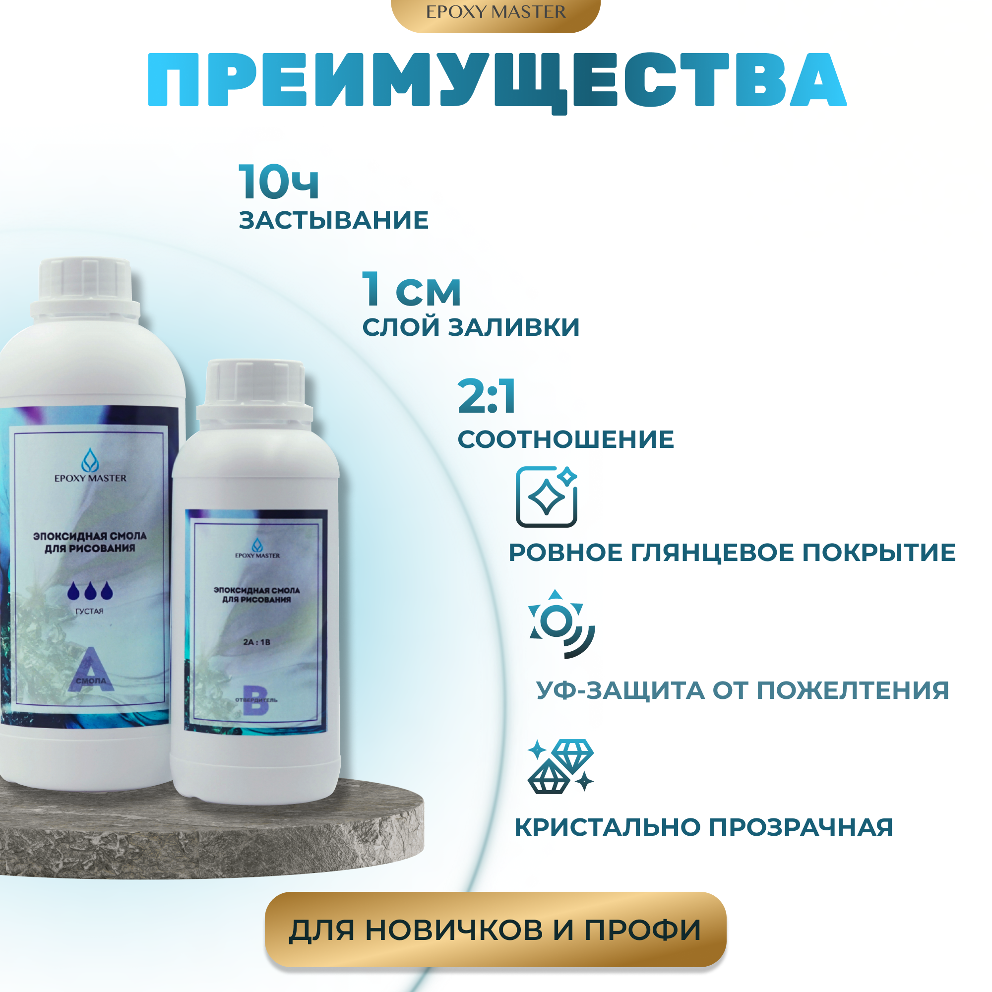 Купить Прозрачная эпоксидная смола для рисования EpoxyMaster (густая), 1500 грамм с доставкой по всей России.