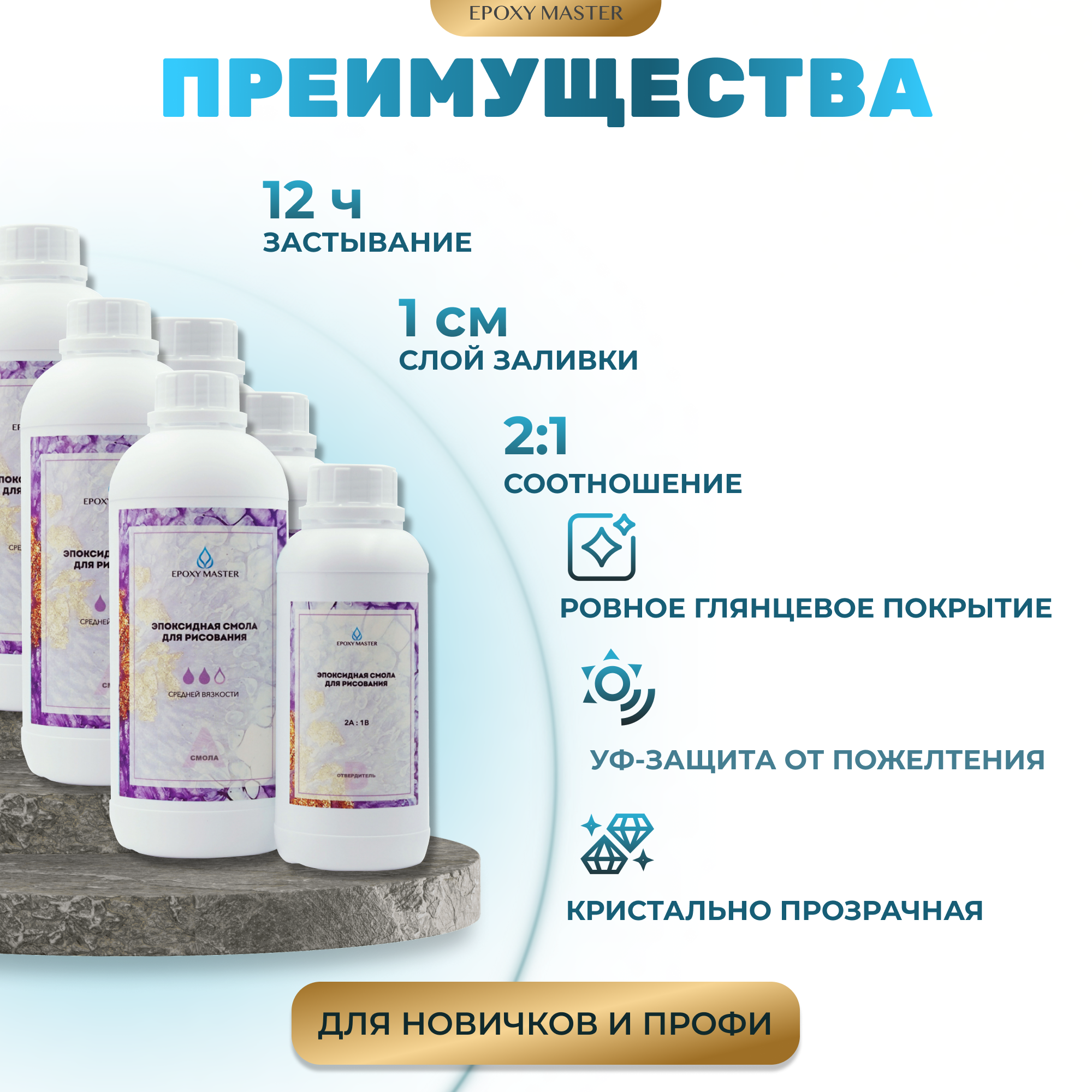 Купить Прозрачная эпоксидная смола для рисования EpoxyMaster (средняя вязкость), 4500 грамм с доставкой по всей России.