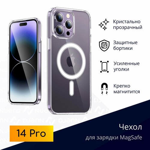 Купить Прозрачный чехол для iPhone 14 Pro с магнитом для беспроводной зарядки MagSafe / противоударный с защитой камеры / Clear case / Original Drop с доставкой по всей России.