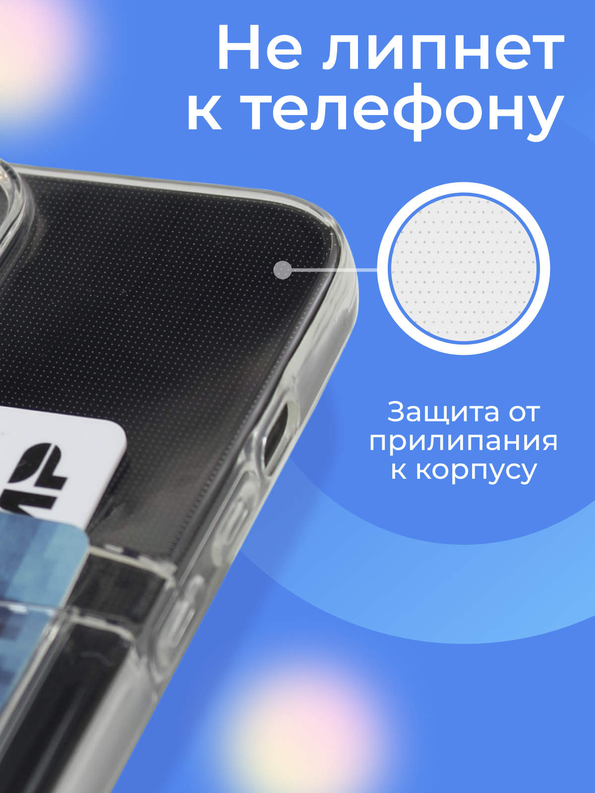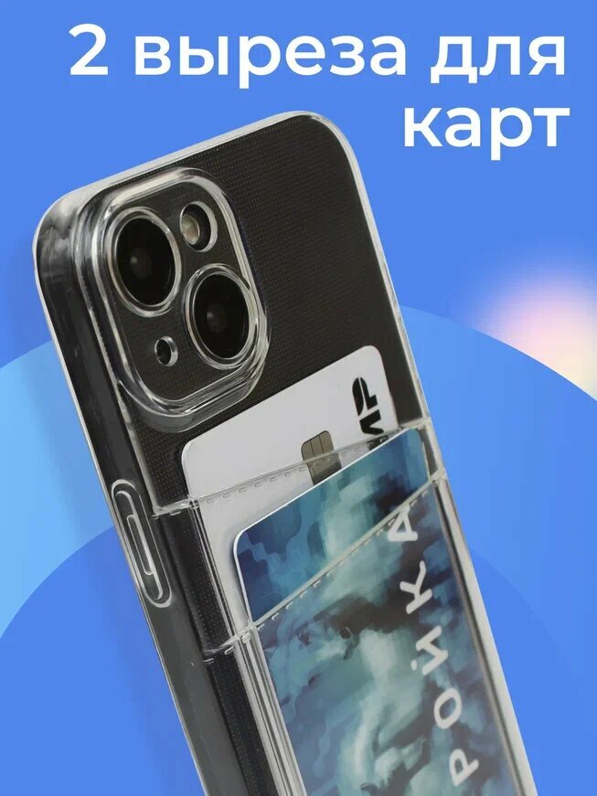 Купить Чехол для iPhone 13 противоударный, прозрачный силиконовый чехол картхолдер с двумя кармашками, защитный чехол с доставкой по всей России.