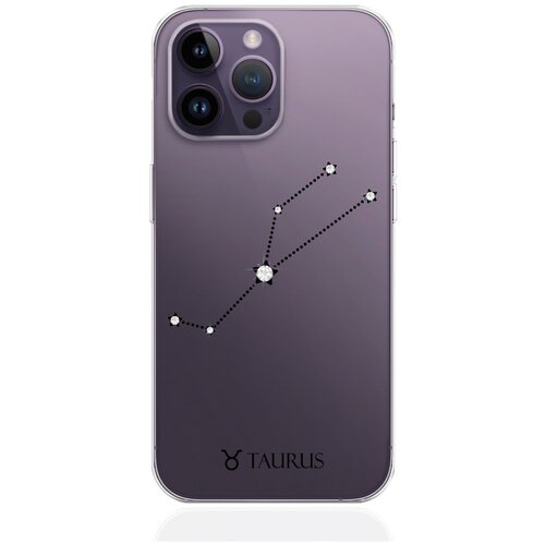 Купить Прозрачный силиконовый чехол MustHaveCase для iPhone 14 Pro Max с кристаллами Lux Знак зодиака Телец Taurus для Айфон 14 Про Макс с доставкой по всей России.
