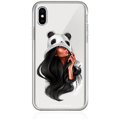 Купить Прозрачный силиконовый чехол MustHaveCase для iPhone X/XS Panda Girl/ Панда для Айфон 10/10C Противоударный с доставкой по всей России.
