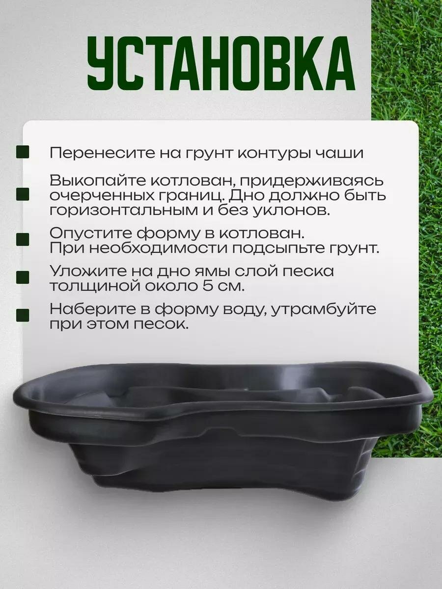 Пруд садовый пластиковый, объем 400 л, длина 120 см, ширина 84 см, чёрный: сравнение цен, характеристики, фото, актуальное наличие и цены.