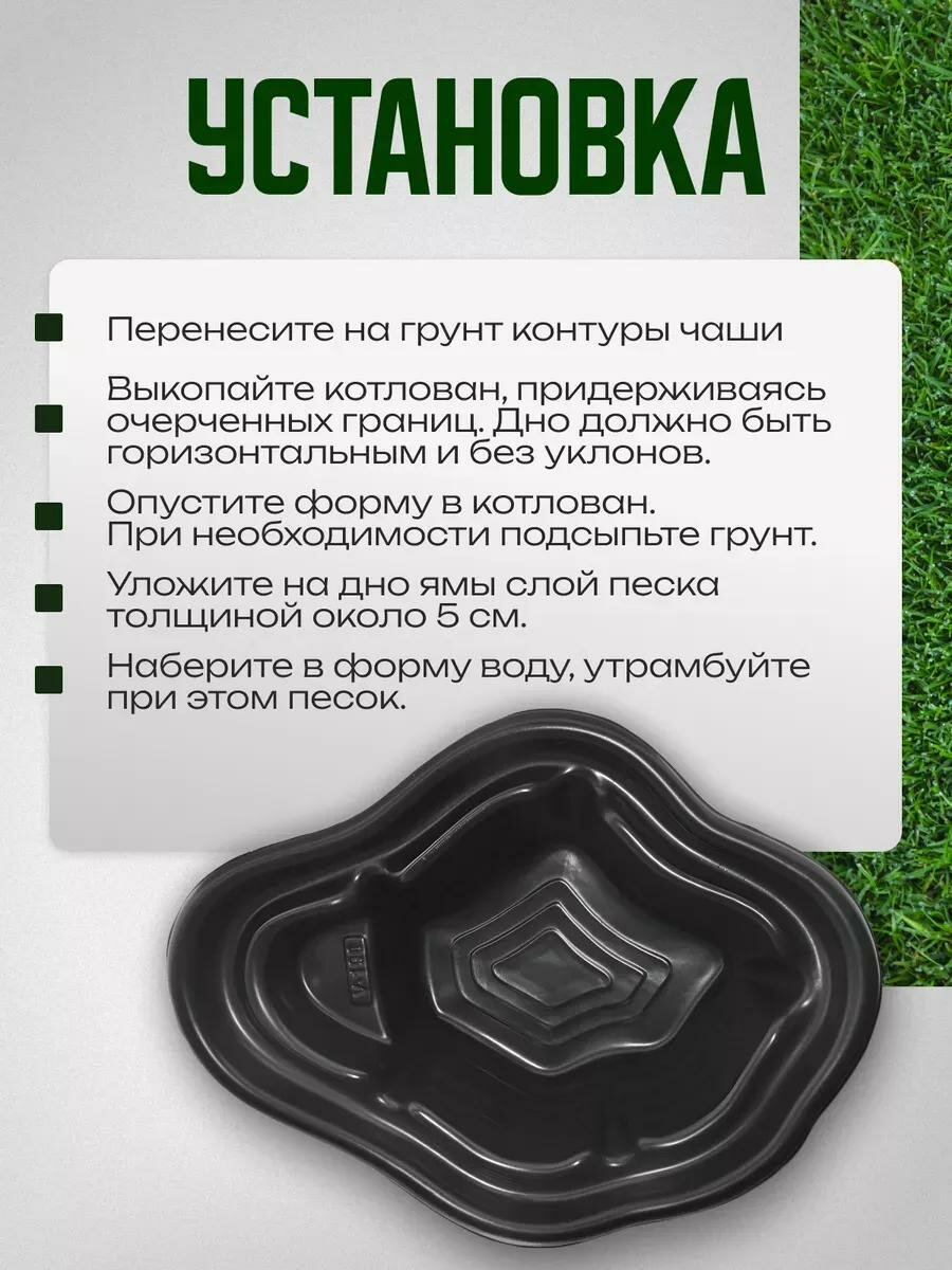 Пруд садовый пластиковый, объём 190 л, длина 135 см, ширина 99 см, цвет чёрный: сравнение цен, характеристики, фото, актуальное наличие и цены.