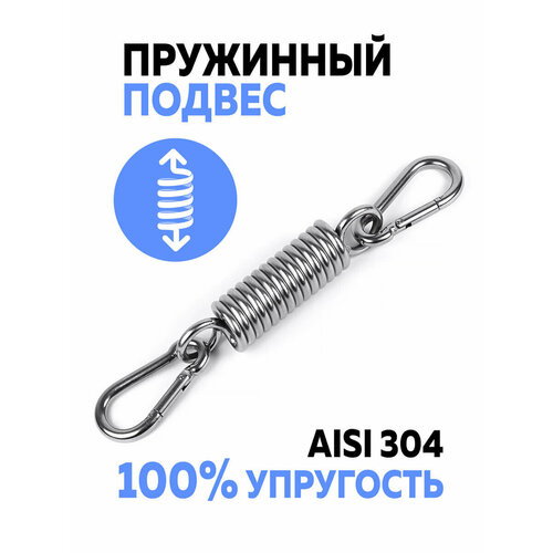 надежность: Пружинный подвес для подвешивания качелей изготовлен из высокопрочной и долговечной нержавеющей стали. Он рассчитан на нагрузку до 200 кг на одну пружину. Его можно использовать на улице и в помещении. Такой подвес используется при установке подвесного кресла, гамака или детских качелей на веранде, балконе, в саду и на террасе. Упругость, надежность и превосходное качество подтверждены серьезными испытаниями.