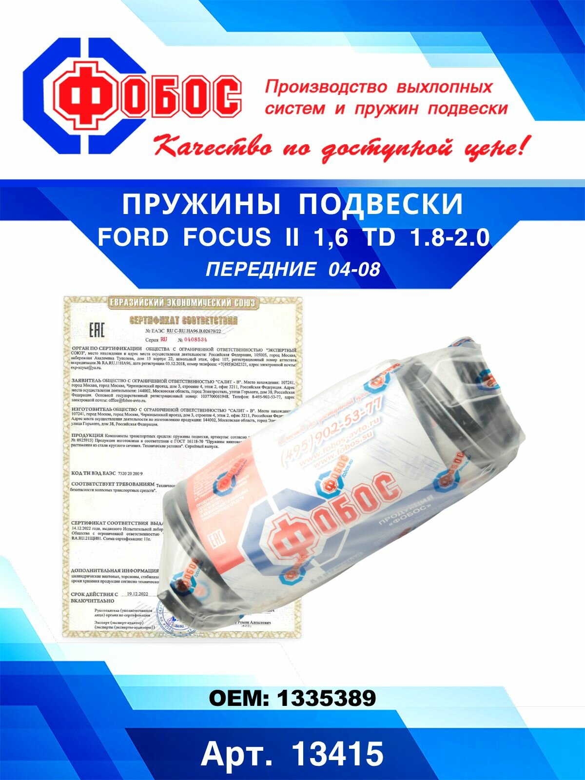 Пружина подвески Ford Focus2 1.6TD 1.8-2.0 фобос передняя 04-08 13415: сравнение цен, характеристики, фото, актуальное наличие и цены.