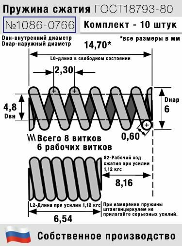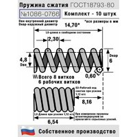Купить Пружина сжатия 1086-0766, L 14,70 мм; d 0,60 мм; D 6 мм ГОСТ 18793-80 (комплект 10 штук) с доставкой по всей России. Пружина сжатия 1086-0766, L 14,70 мм; d 0,60 мм; D 6 мм ГОСТ 18793-80 (комплект 10 штук): сравнение цен, характеристики, фото, актуальное наличие и цены.